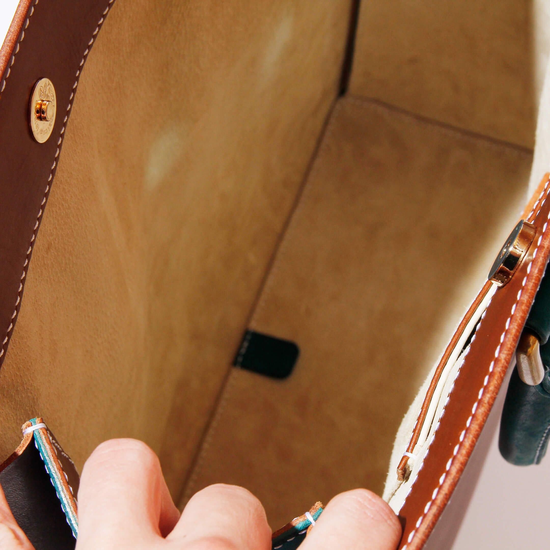 - 高級ピッグスエード内装: 肌触りが極上のスエード。使うたびに内側からも上質さを実感。